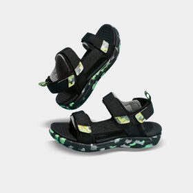 A sporty open-toe sandal with pink adjustable straps, a gray cushioned mesh footbed, and a sturdy black rubber sole — blending comfort, durability, and playful style.