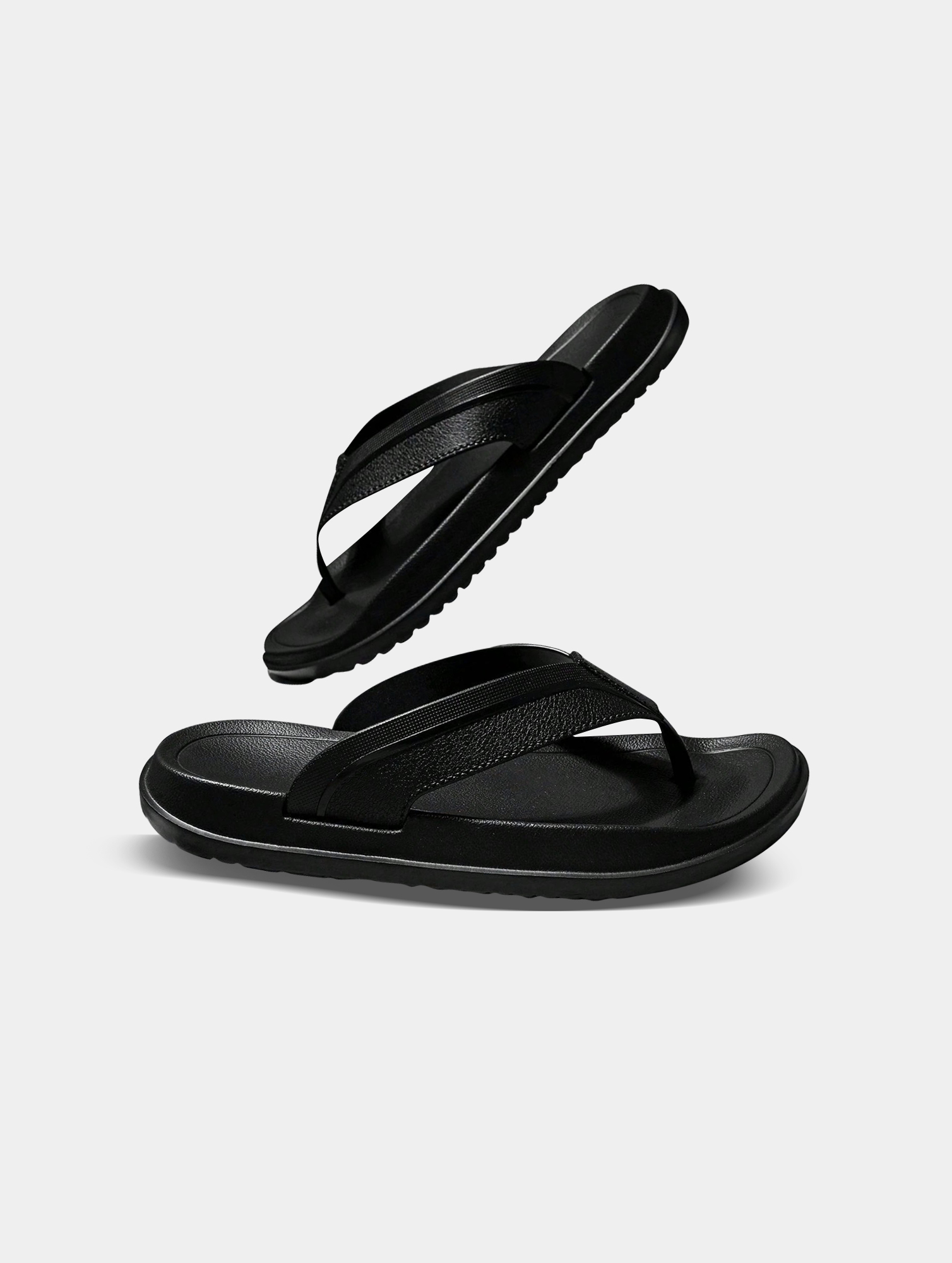 - Sleek black thong sandals for versatile everyday wear.