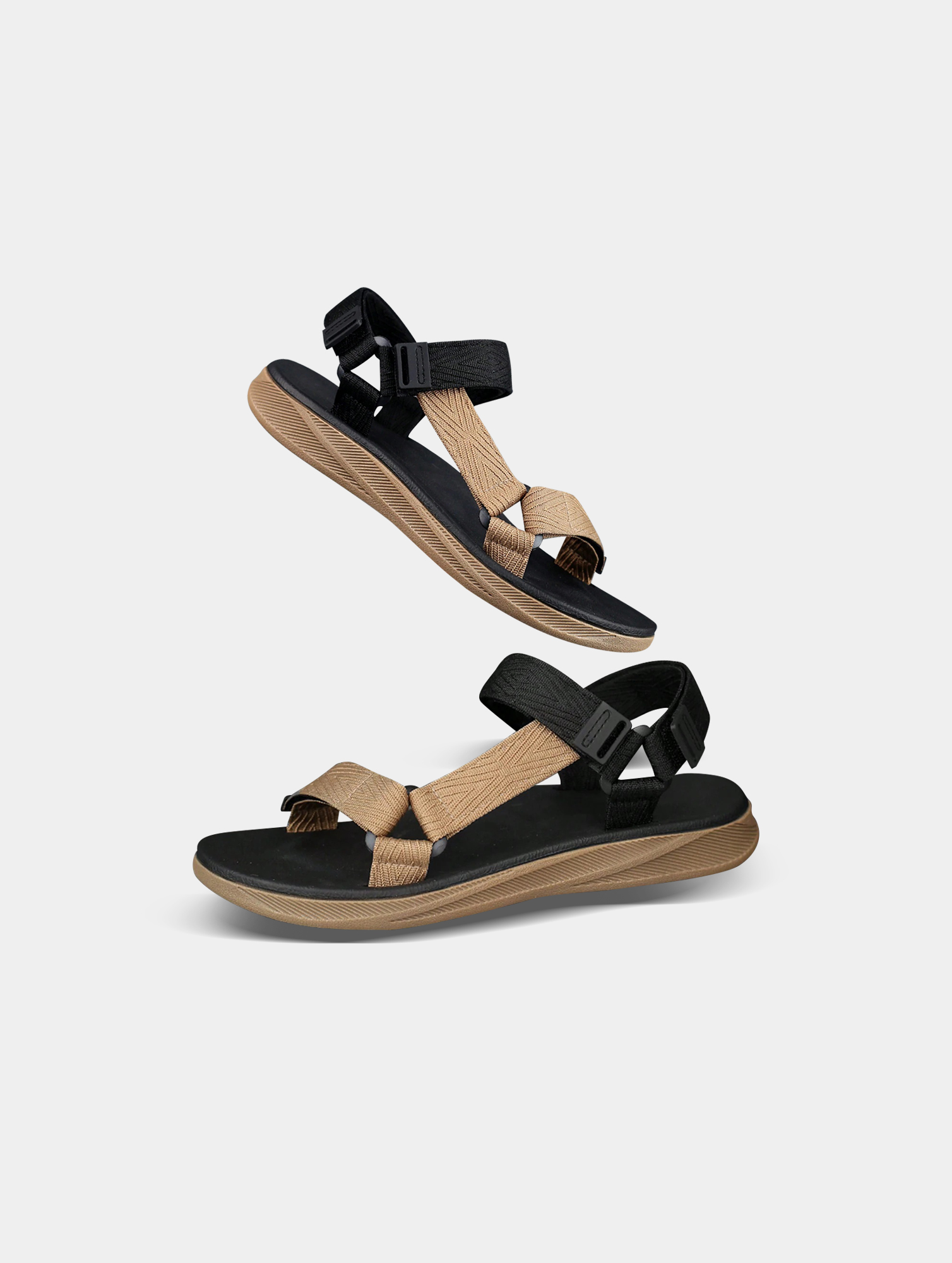 - Men’s lightweight beach sandals with a soft, breathable woven upper.