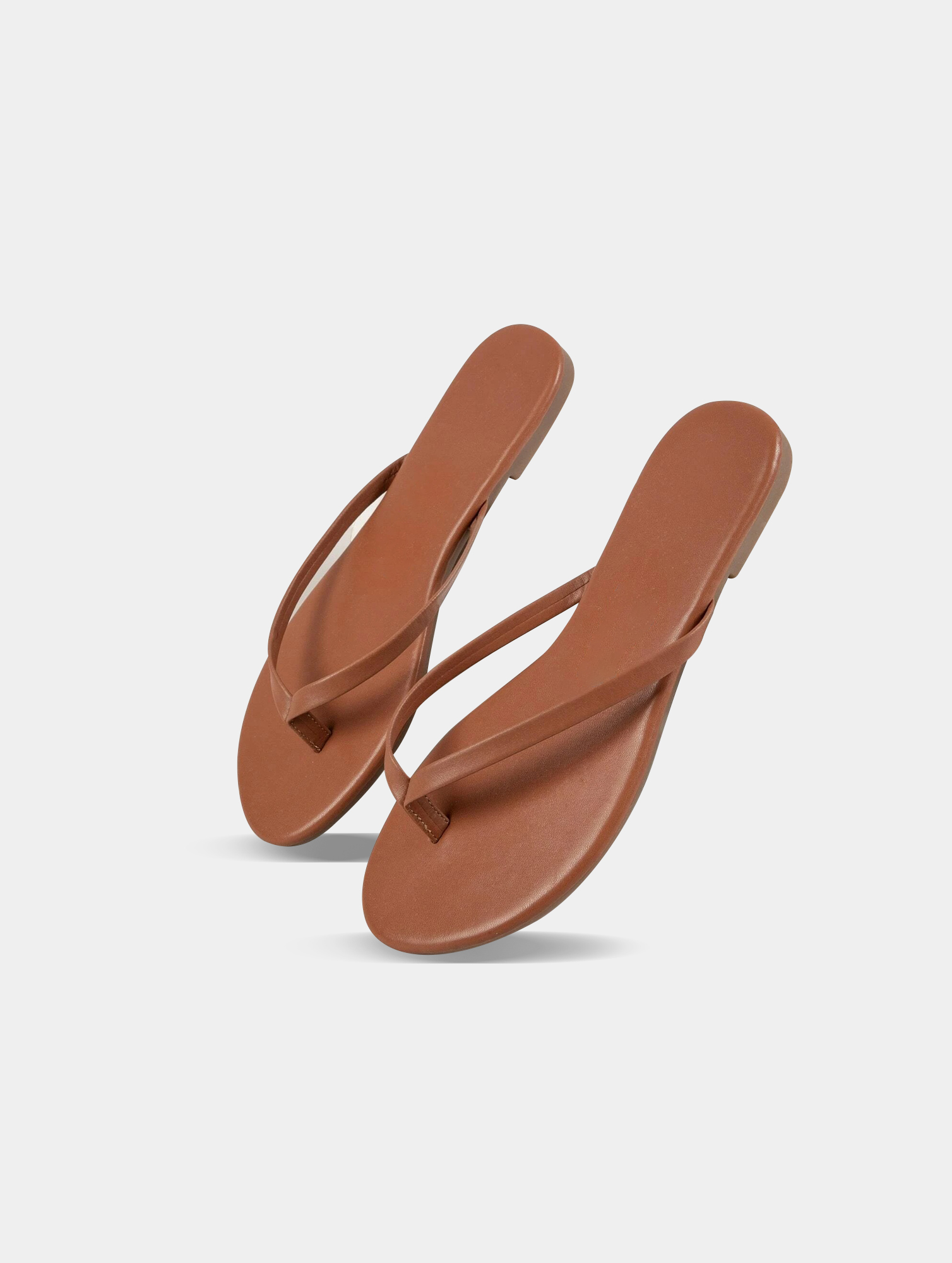 Women’s Faux Leather Flip Flops – Classic Thong, Rubber Outsole